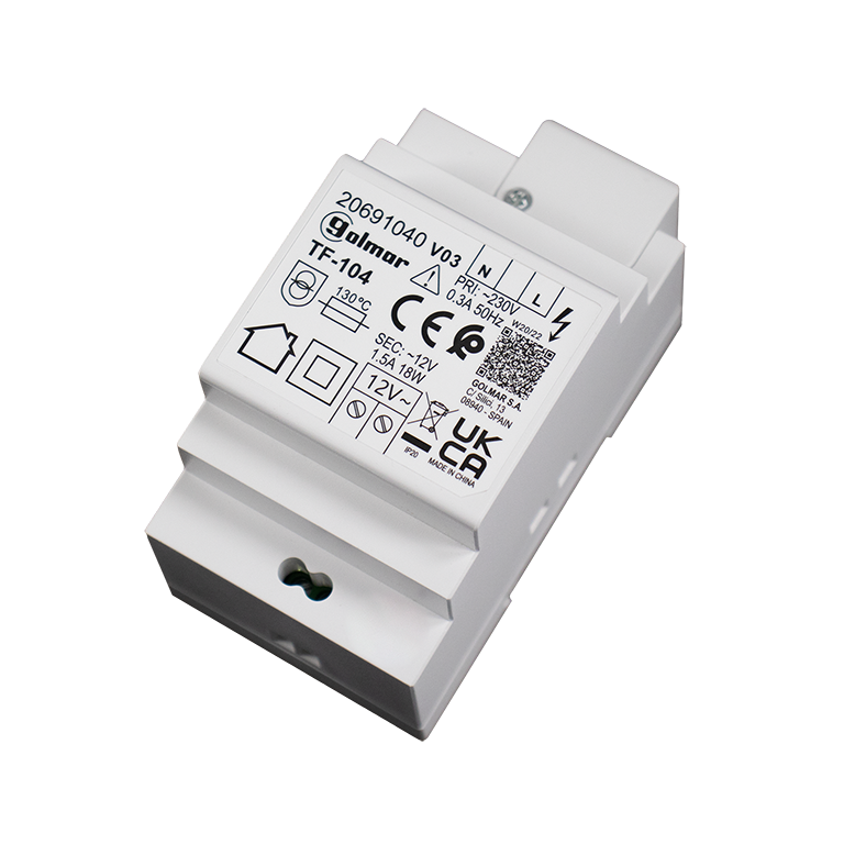 - Transformador de alimentación para equipos de portero electrónico con instalación 4+n.